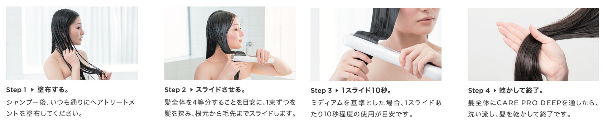 これまでトリートメントの浸透促進手法といえば、「手で揉み込む」「時間を置く」といった方法が一般的でした。しかし、CARE PRO DEEPは、そのような手間を一切不要にしつつ、圧倒的な浸透促進を実現します。