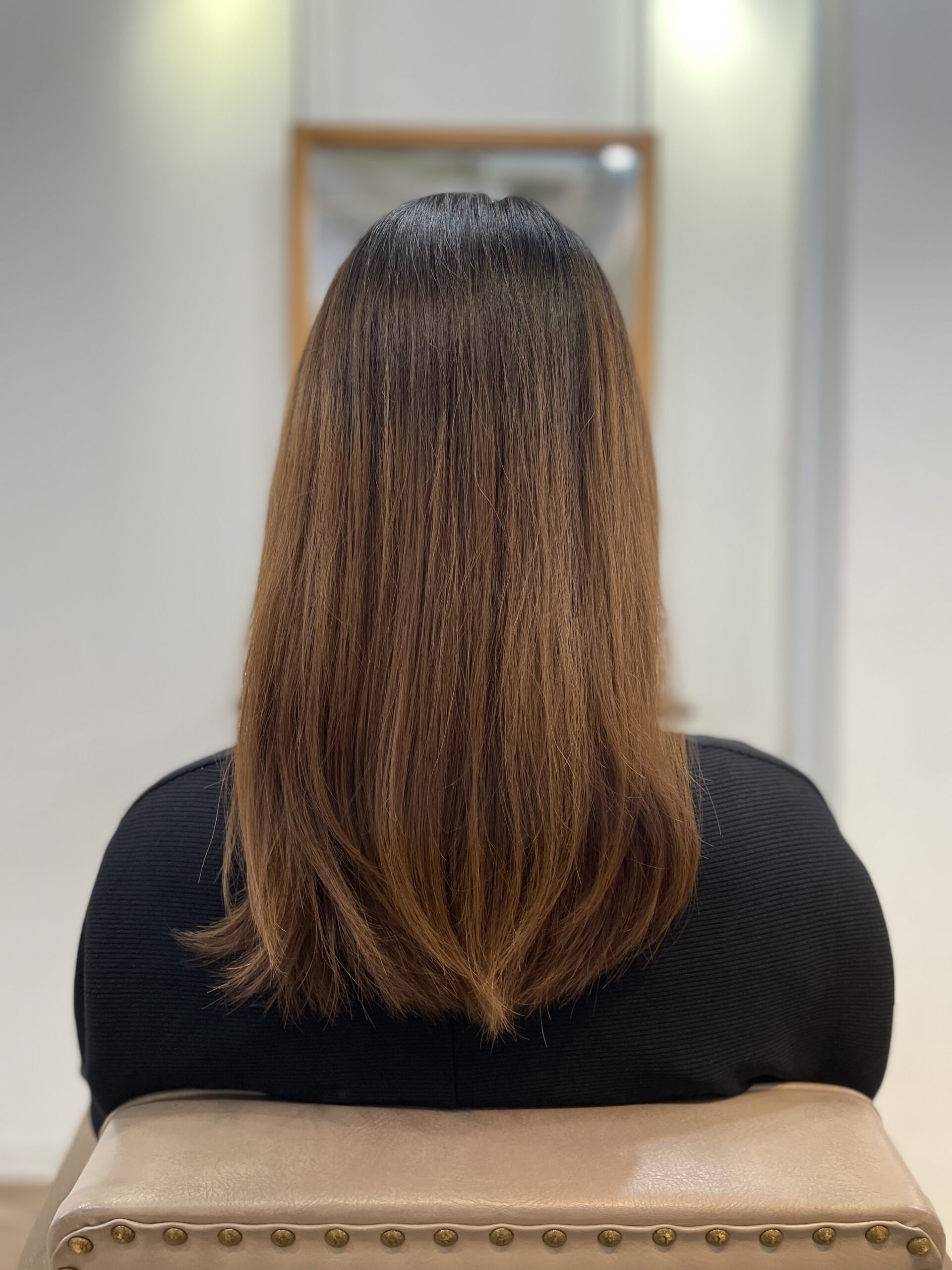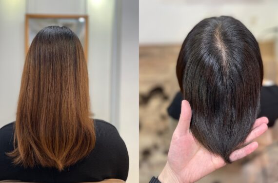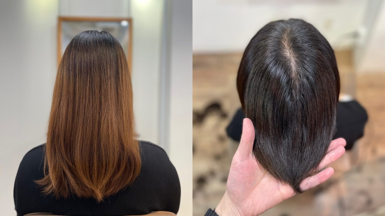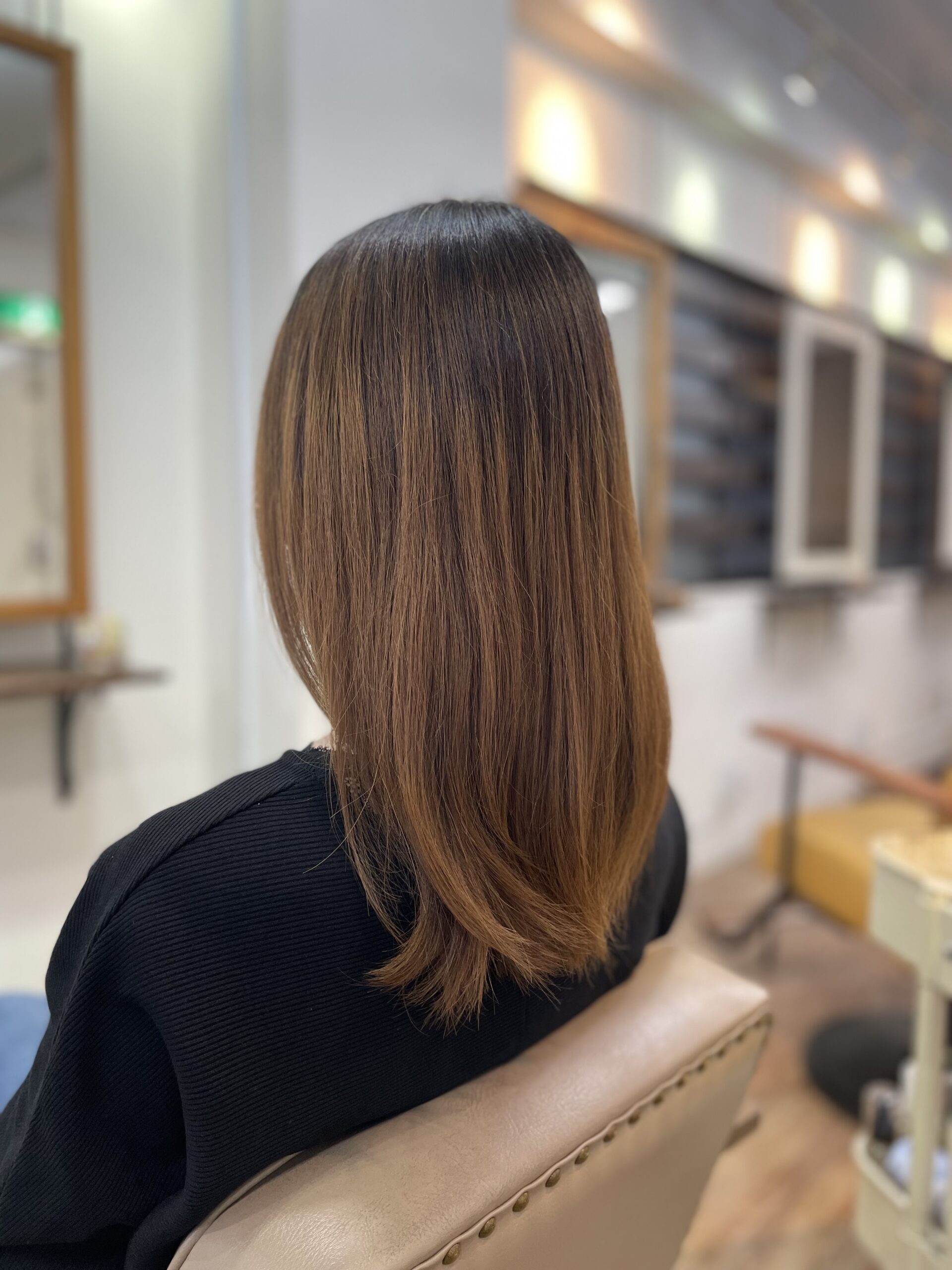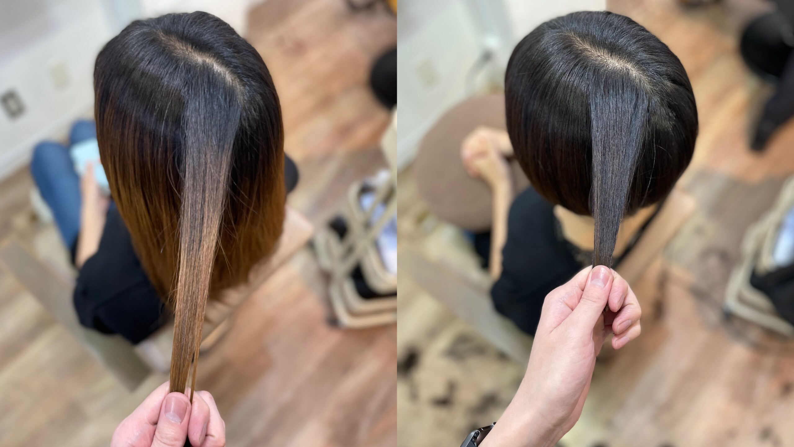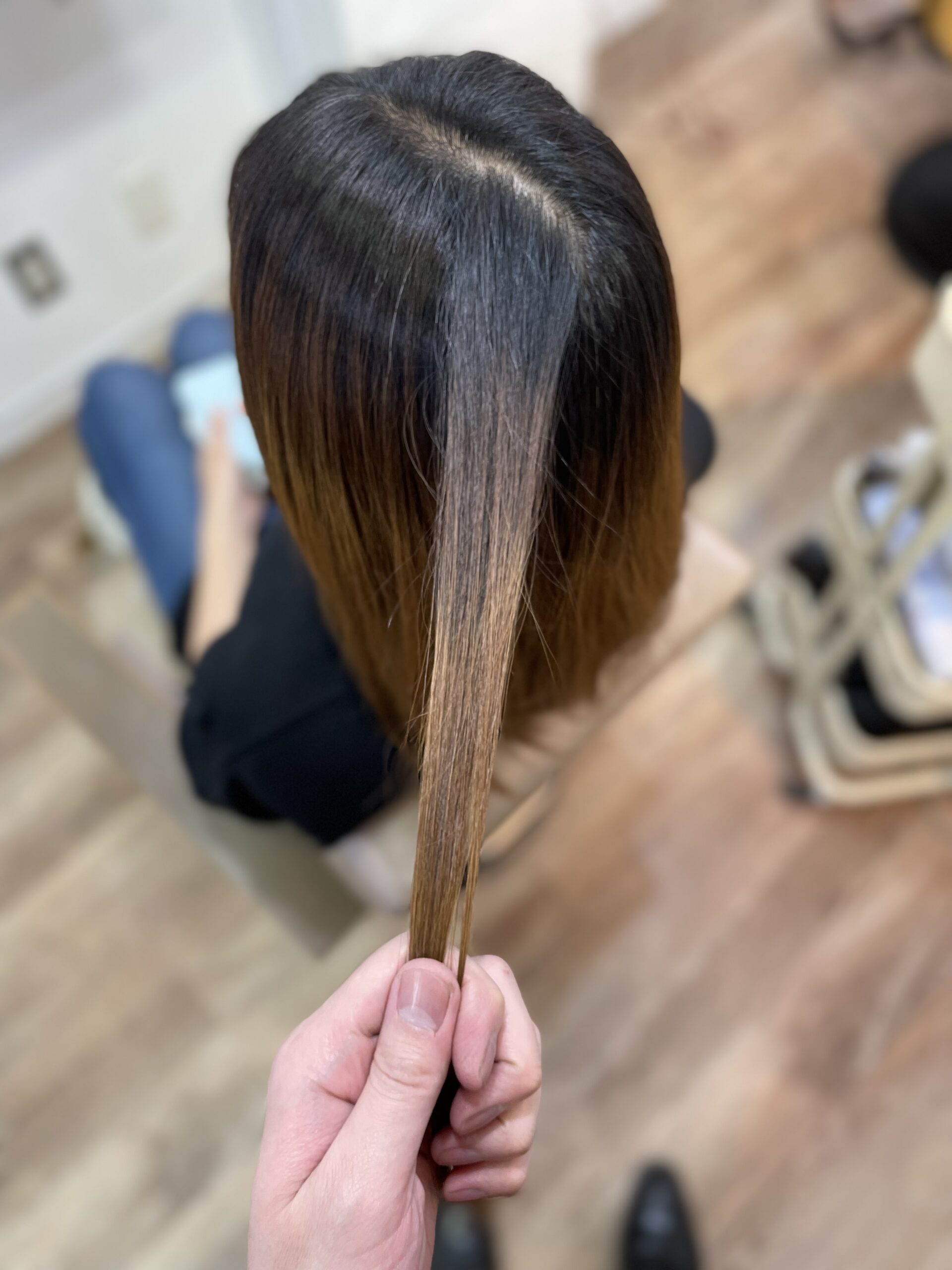 いきなり初回で地毛と同じ明るさにすると、ギャップがありすぎて黒く感じてしまうので、地毛よりも少し明るいくらいで初回は染めていくことが多いです。