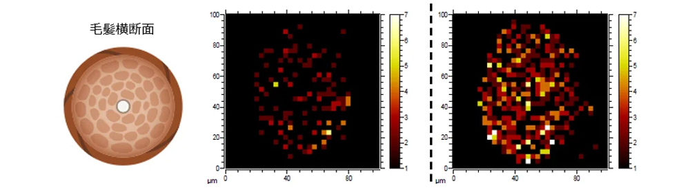 図1 ヘアカラー製剤に配合したシスチンの毛髪への浸透性観察(TOF-SIMS測定)