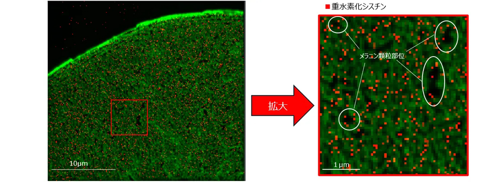 図2 ヘアカラー製剤に配合したシスチンの毛髪浸透部位(Nano-SIMS測定)