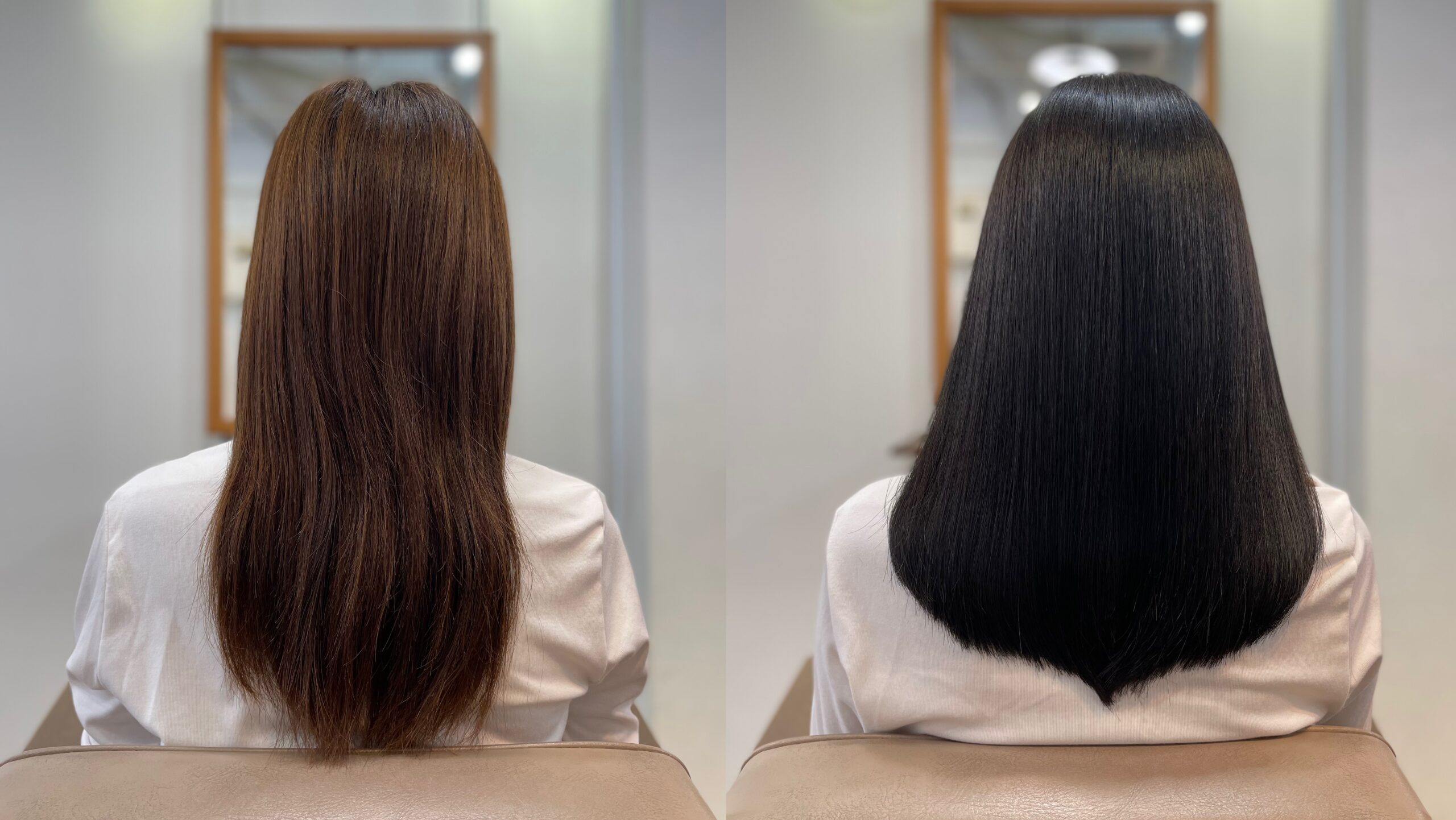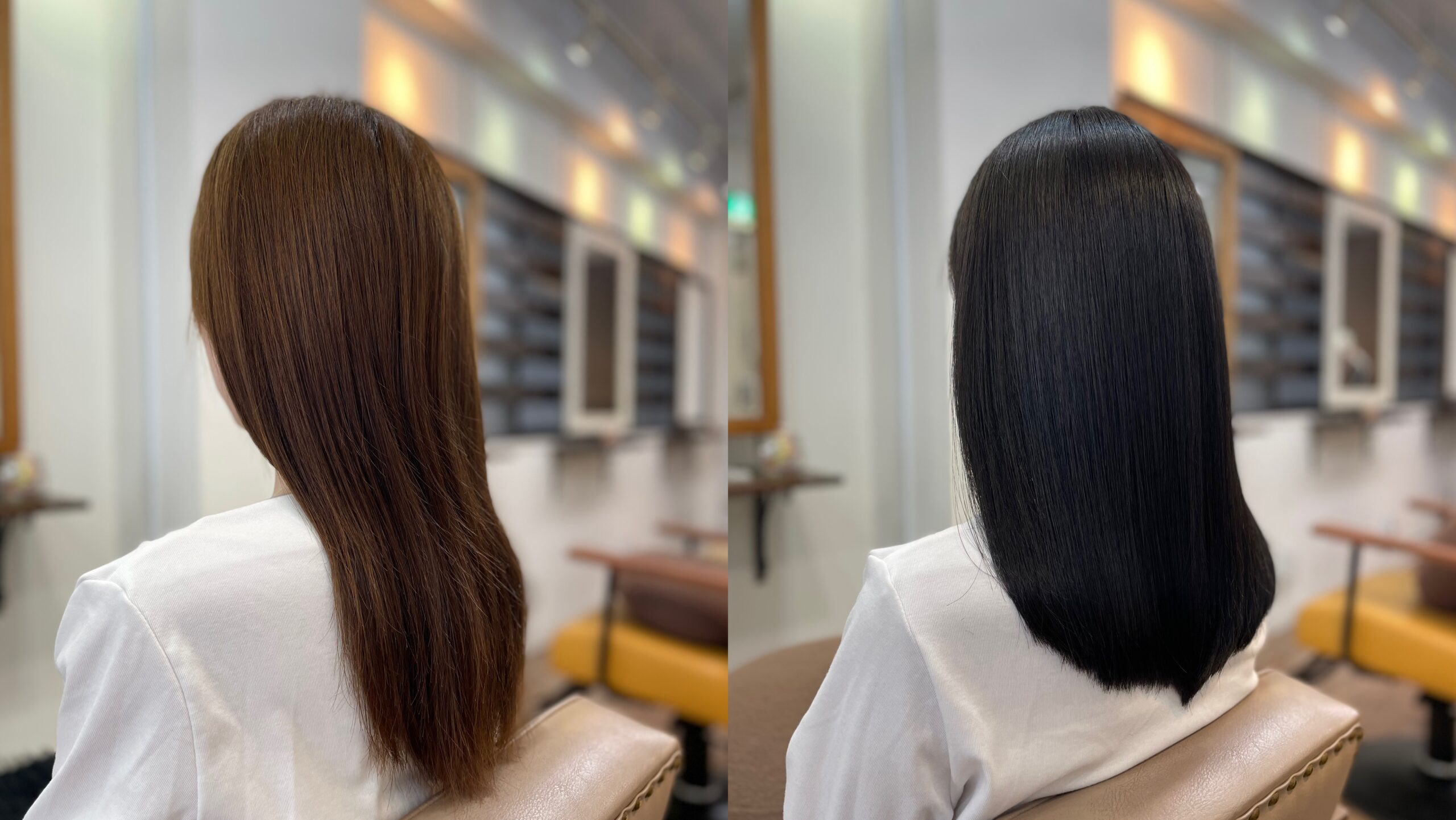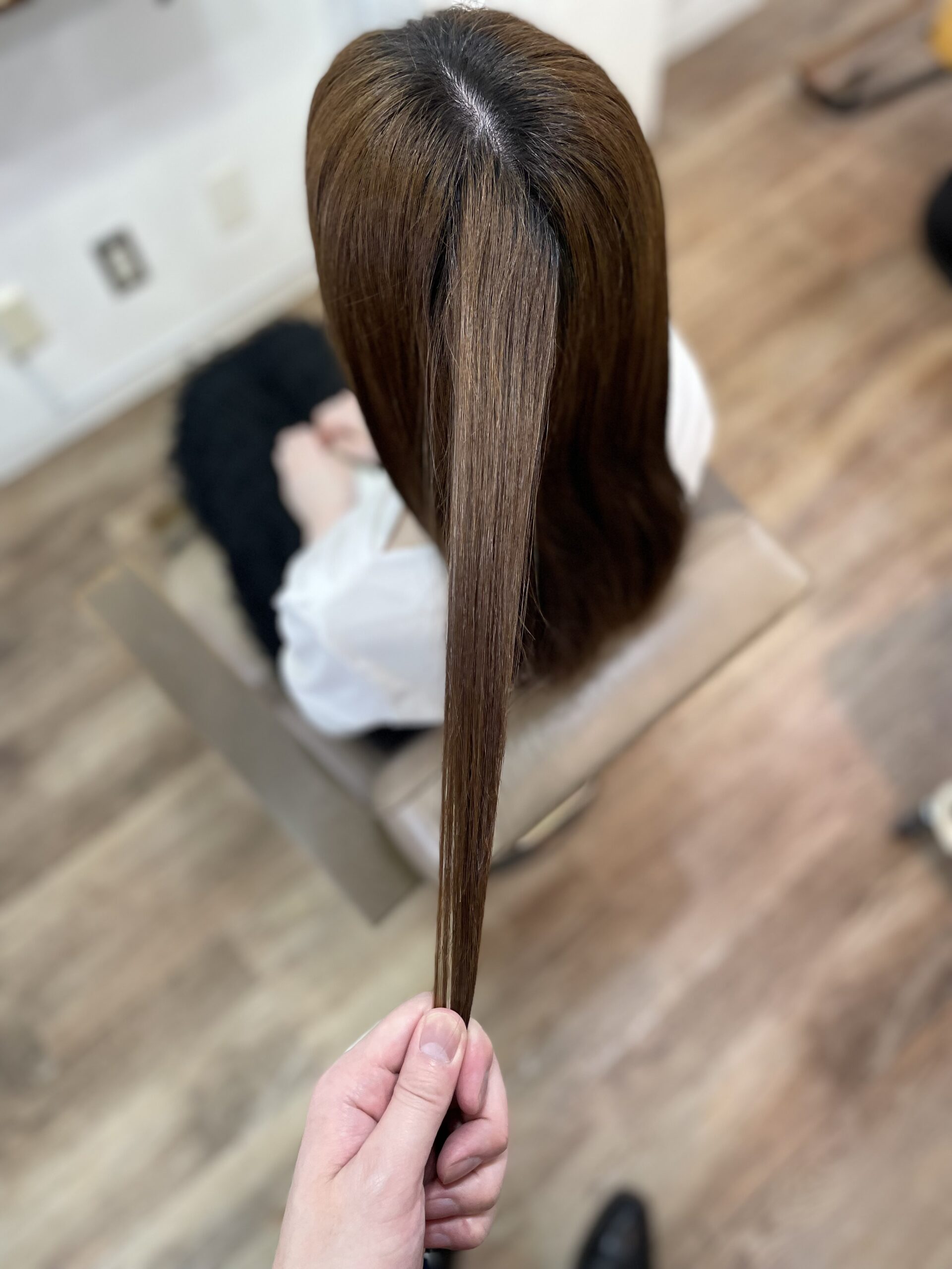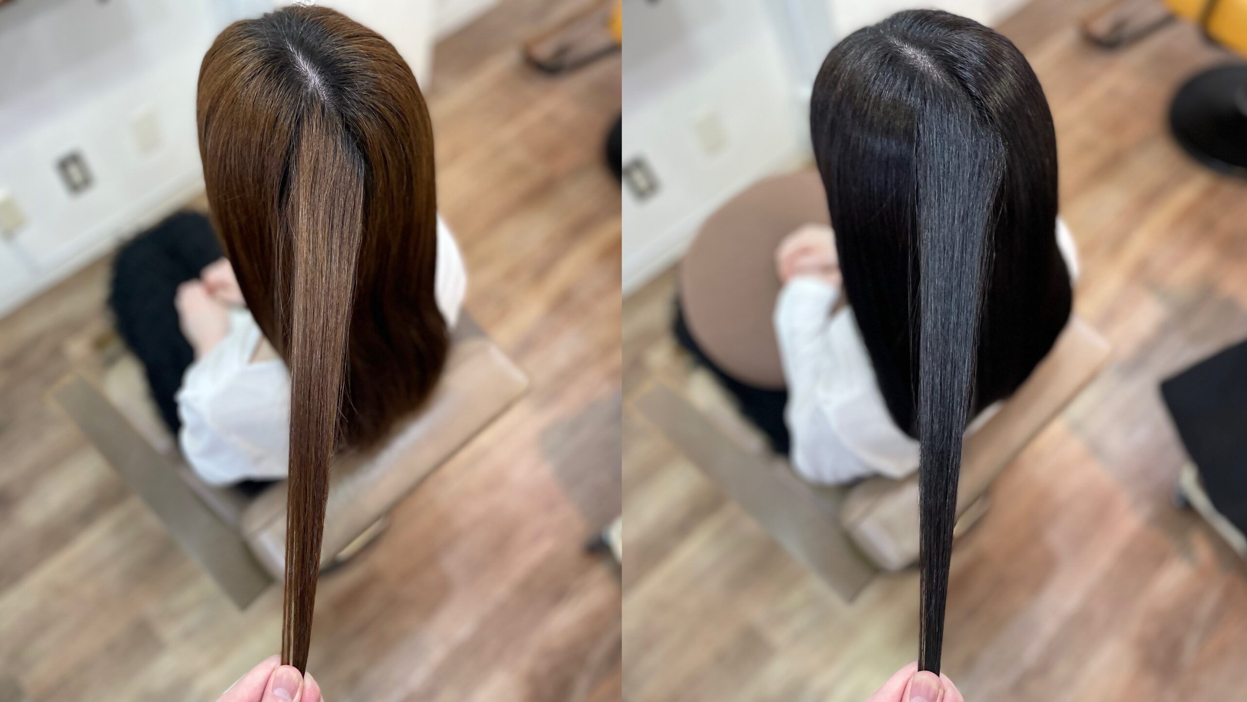 いきなり初回で地毛と同じ明るさにすると、ギャップがありすぎて黒く感じてしまうので、地毛よりも少し明るいくらいで初回は染めていくことが多いです。