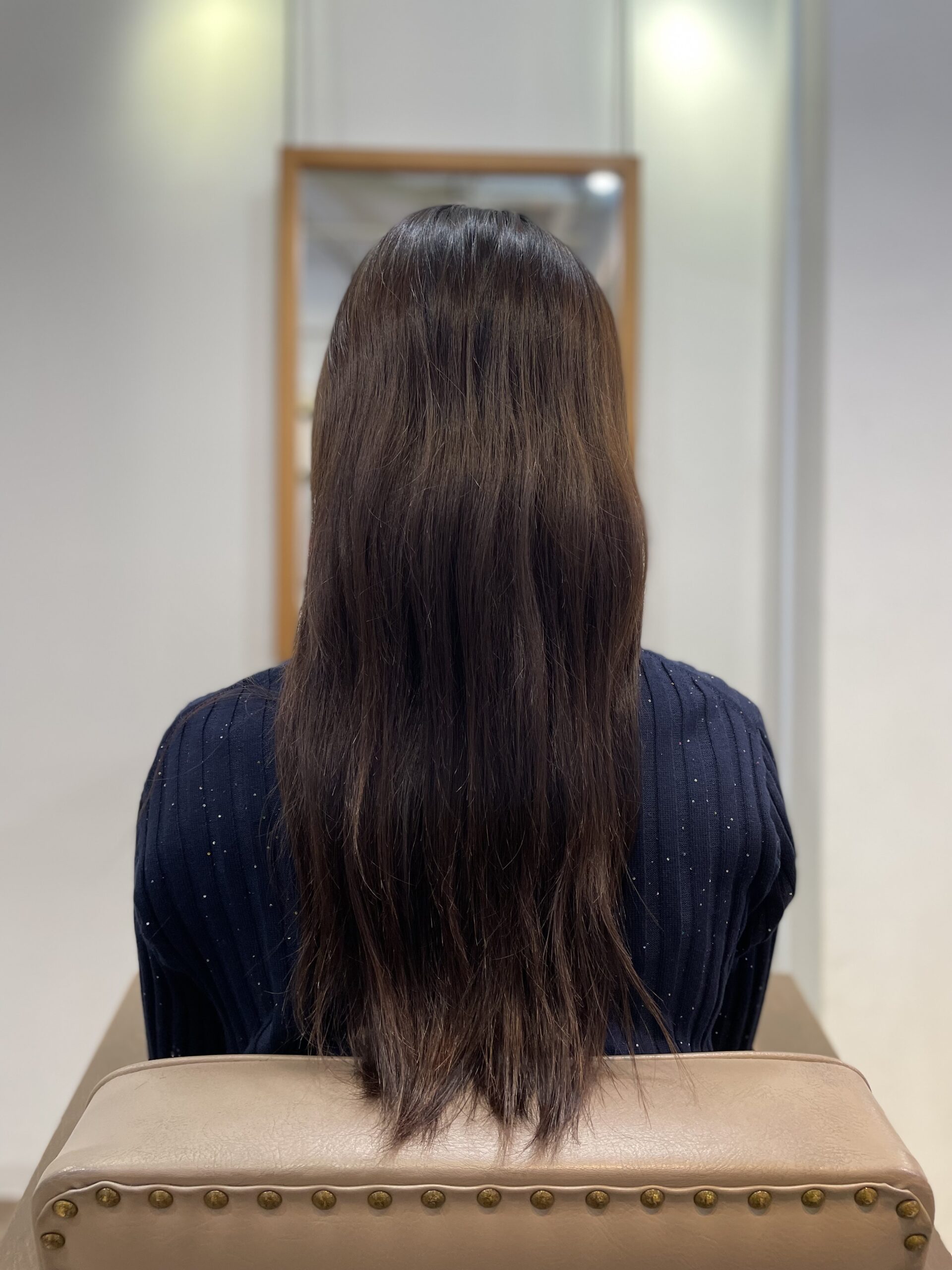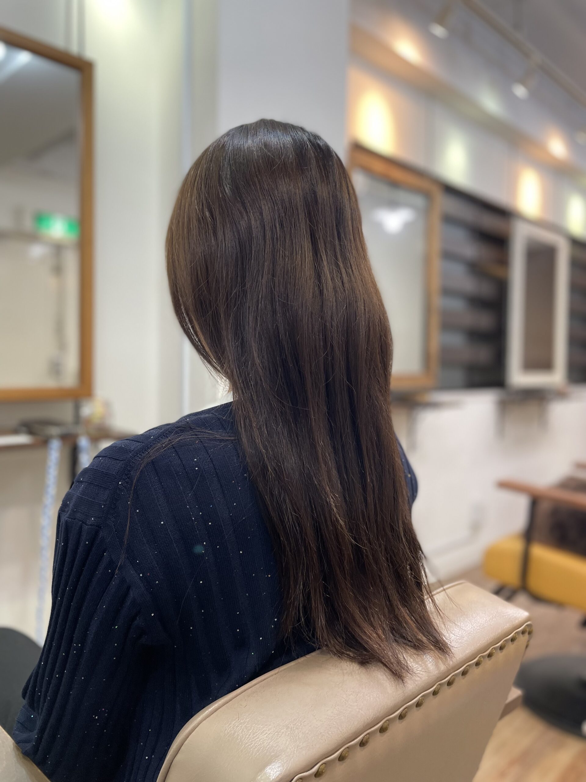 いきなり初回で地毛と同じ明るさにすると、ギャップがありすぎて黒く感じてしまうので、地毛よりも少し明るいくらいで初回は染めていくことが多いです。