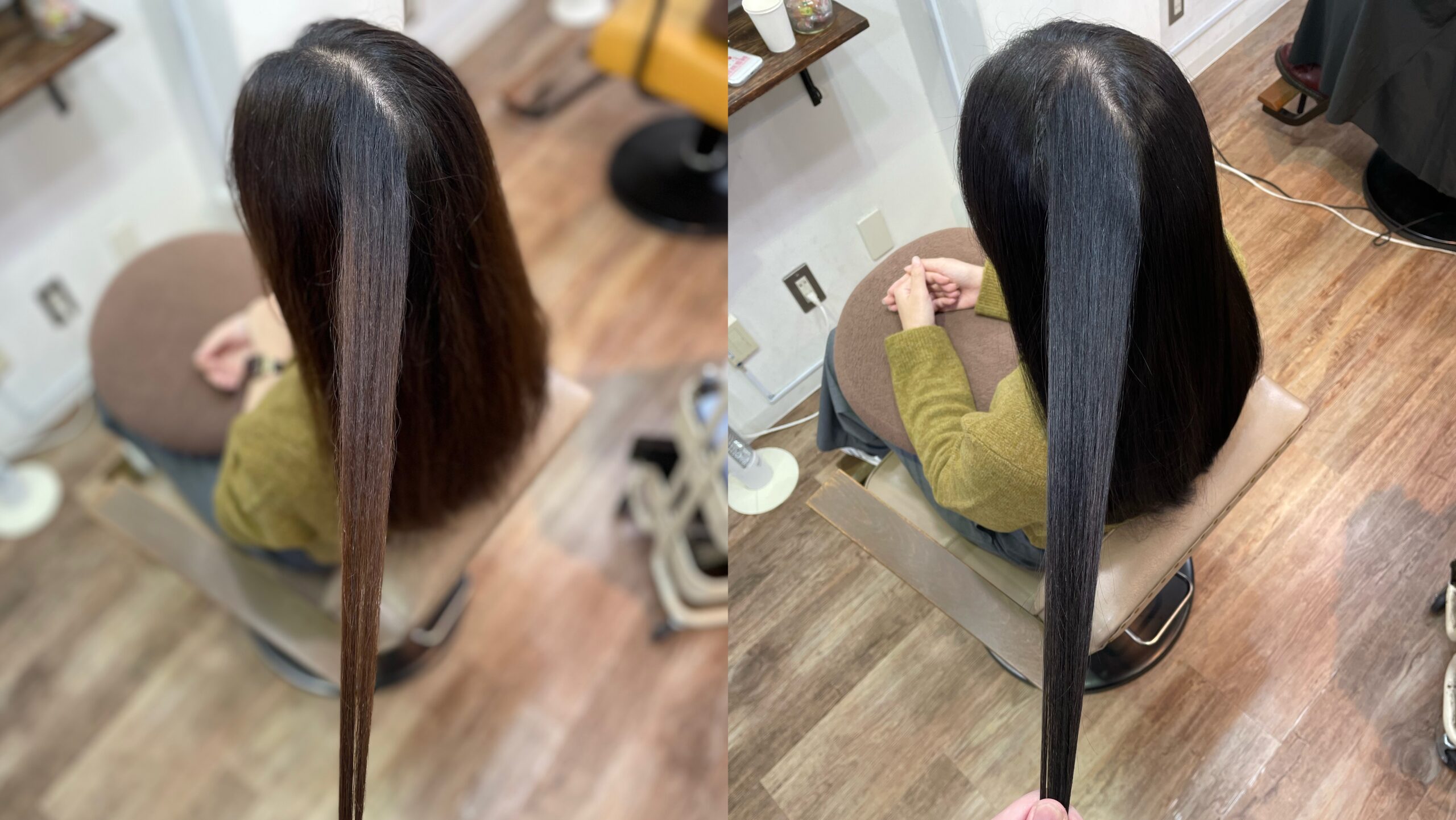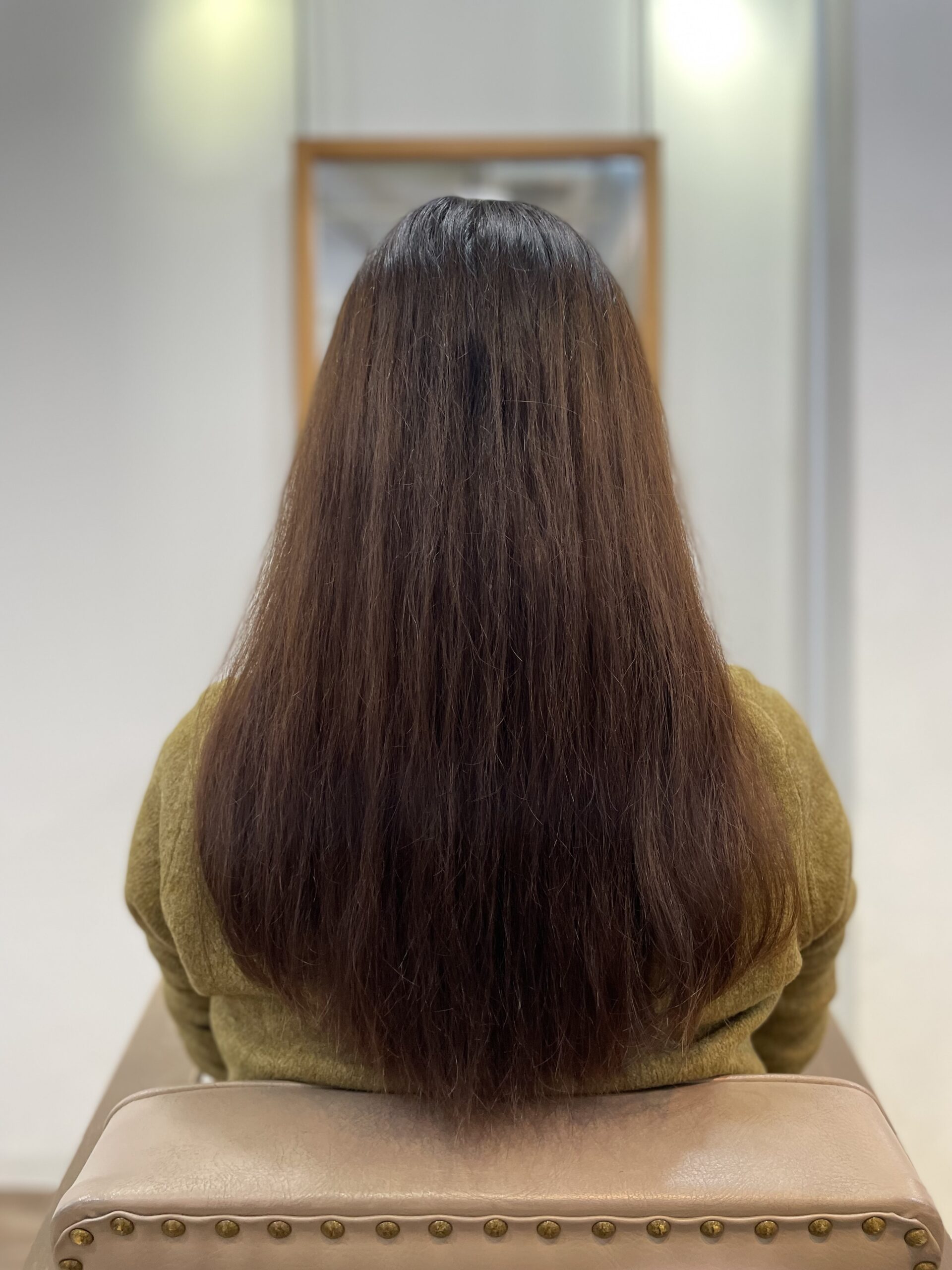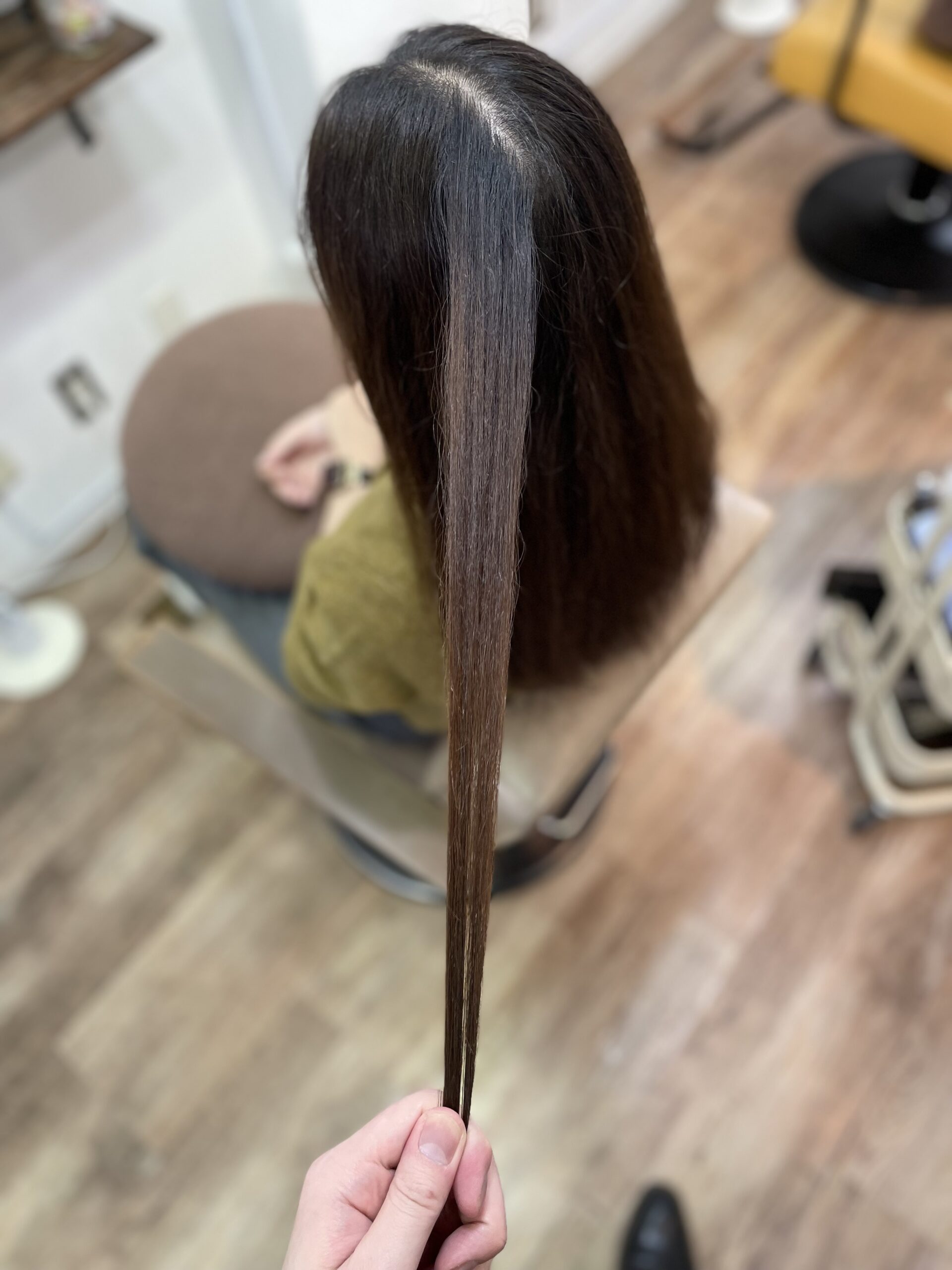 白髪染めで染めてもらってもすぐ茶色になってしまったのでもうカラーをやめて地毛に戻したいとのこと。