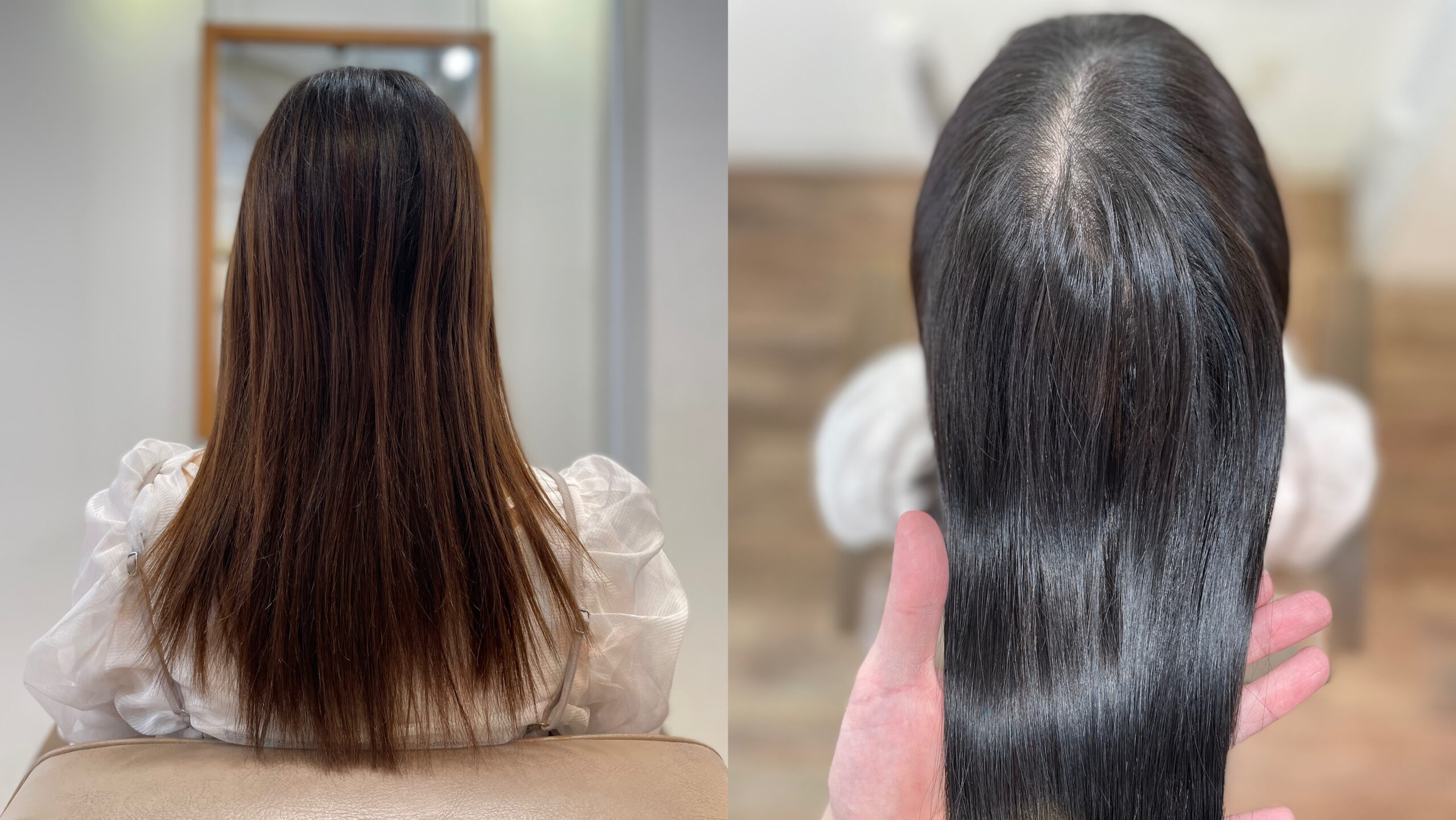 【X(旧Twitter)・ブログ見てのご来店】ブリーチしてから暗くカラーしても色落ちしてしまうし最近は暗い髪色がいいから地毛に戻したい