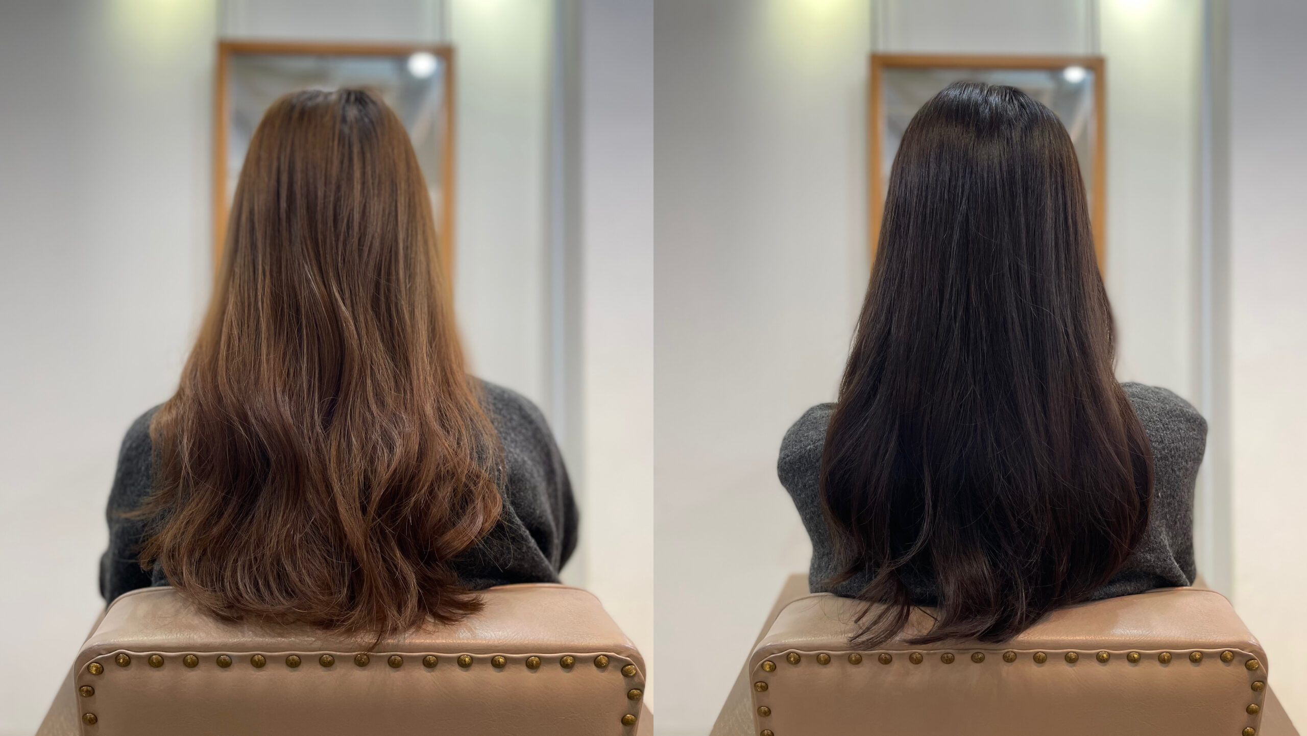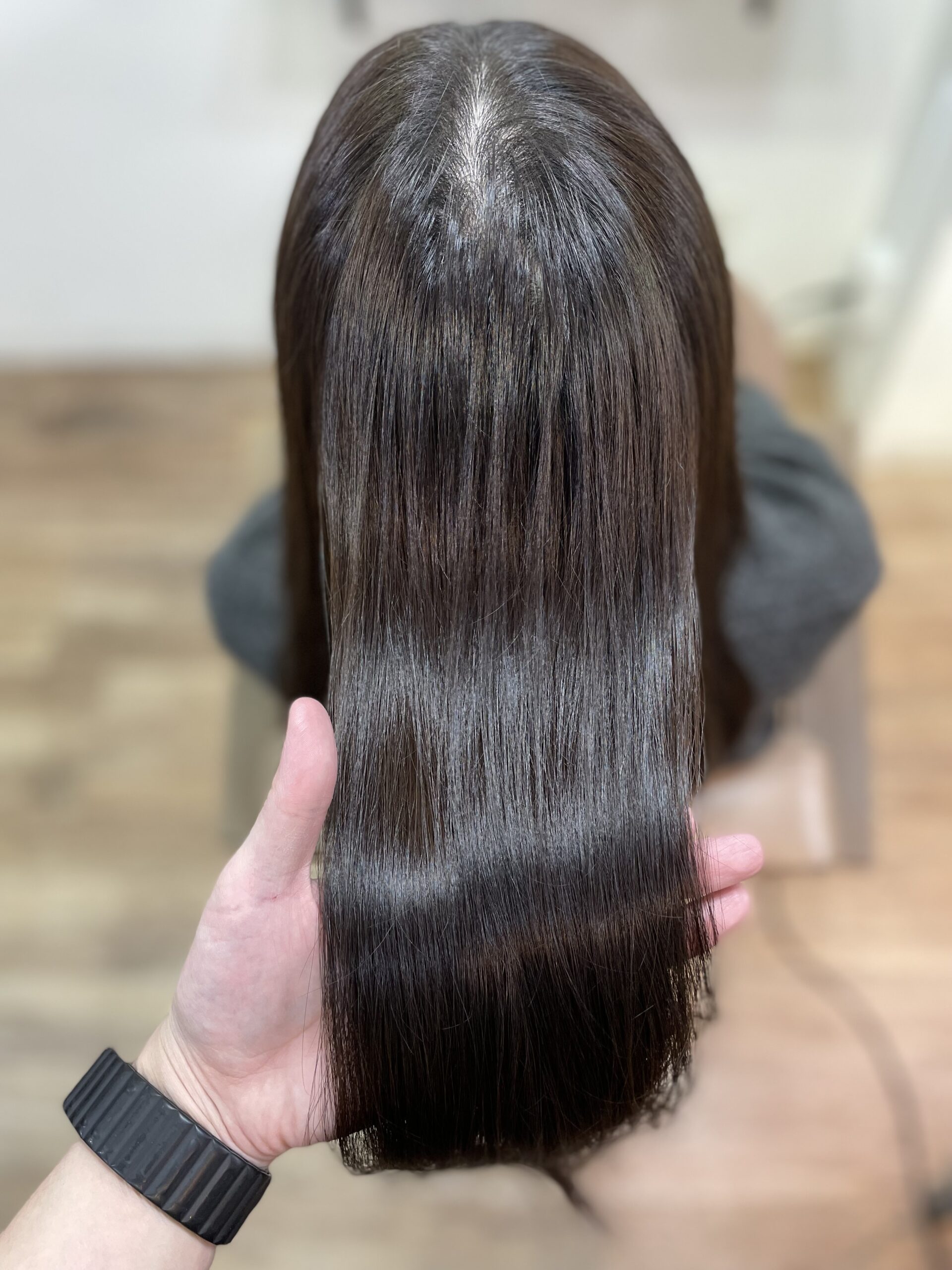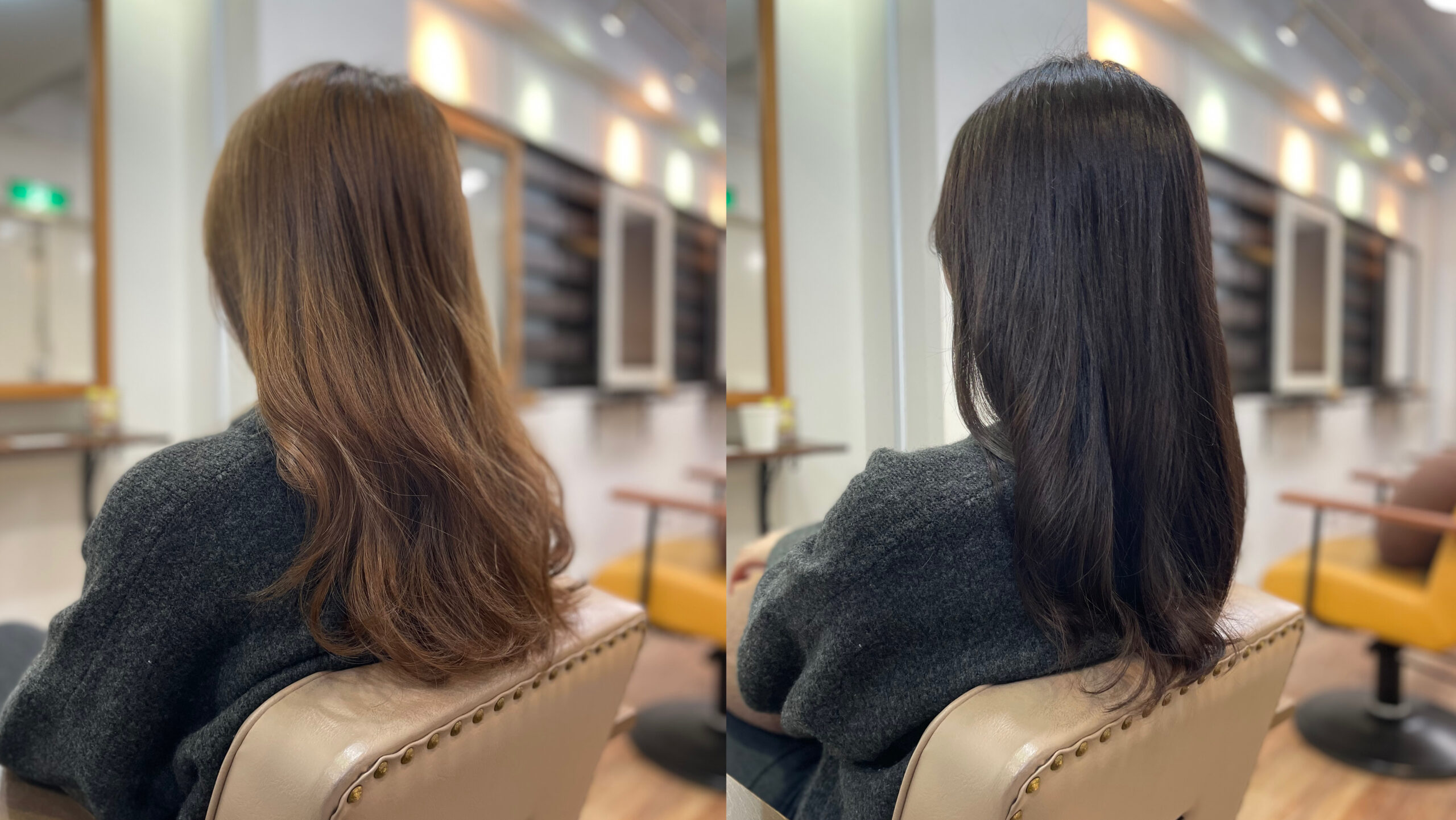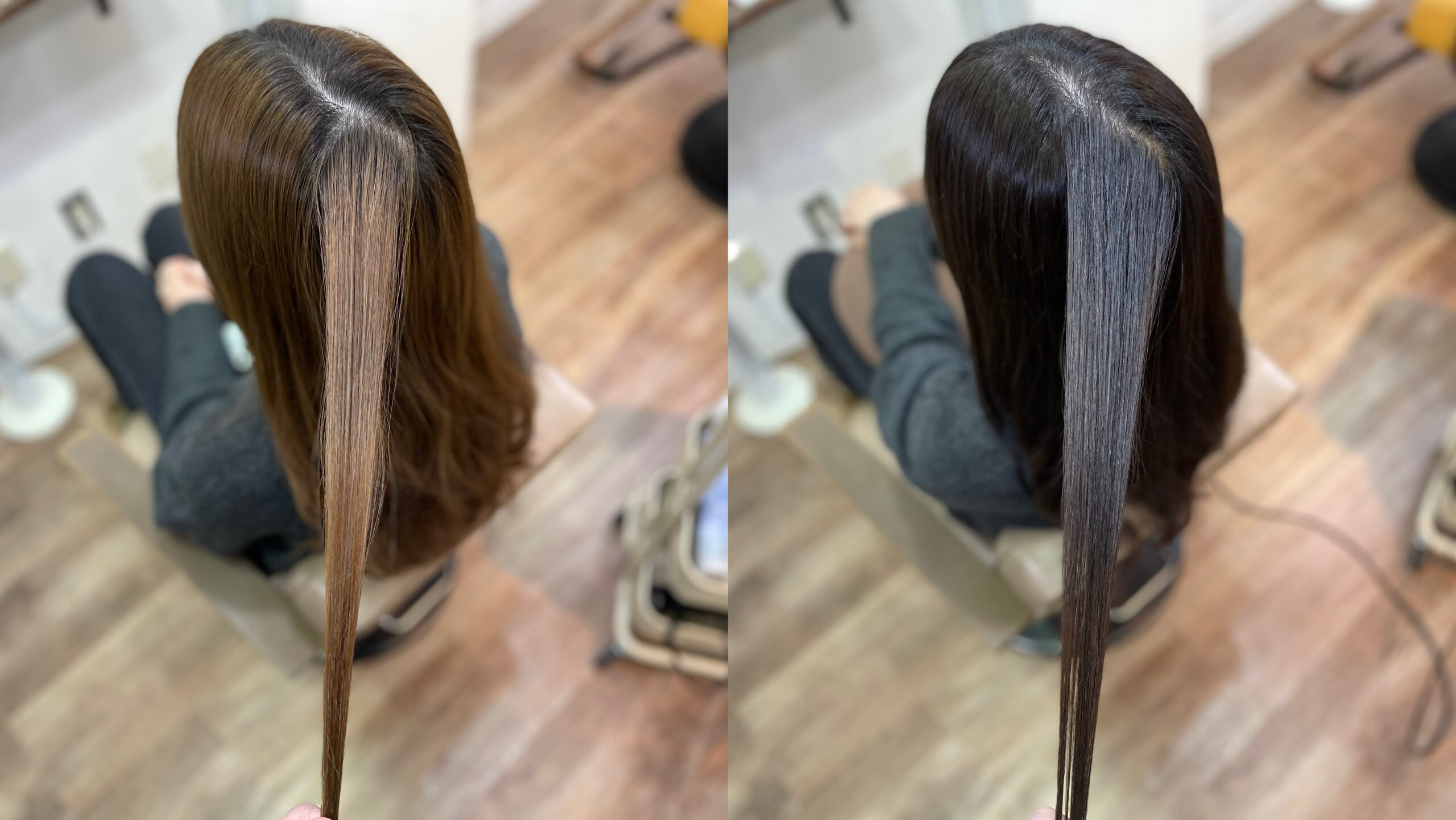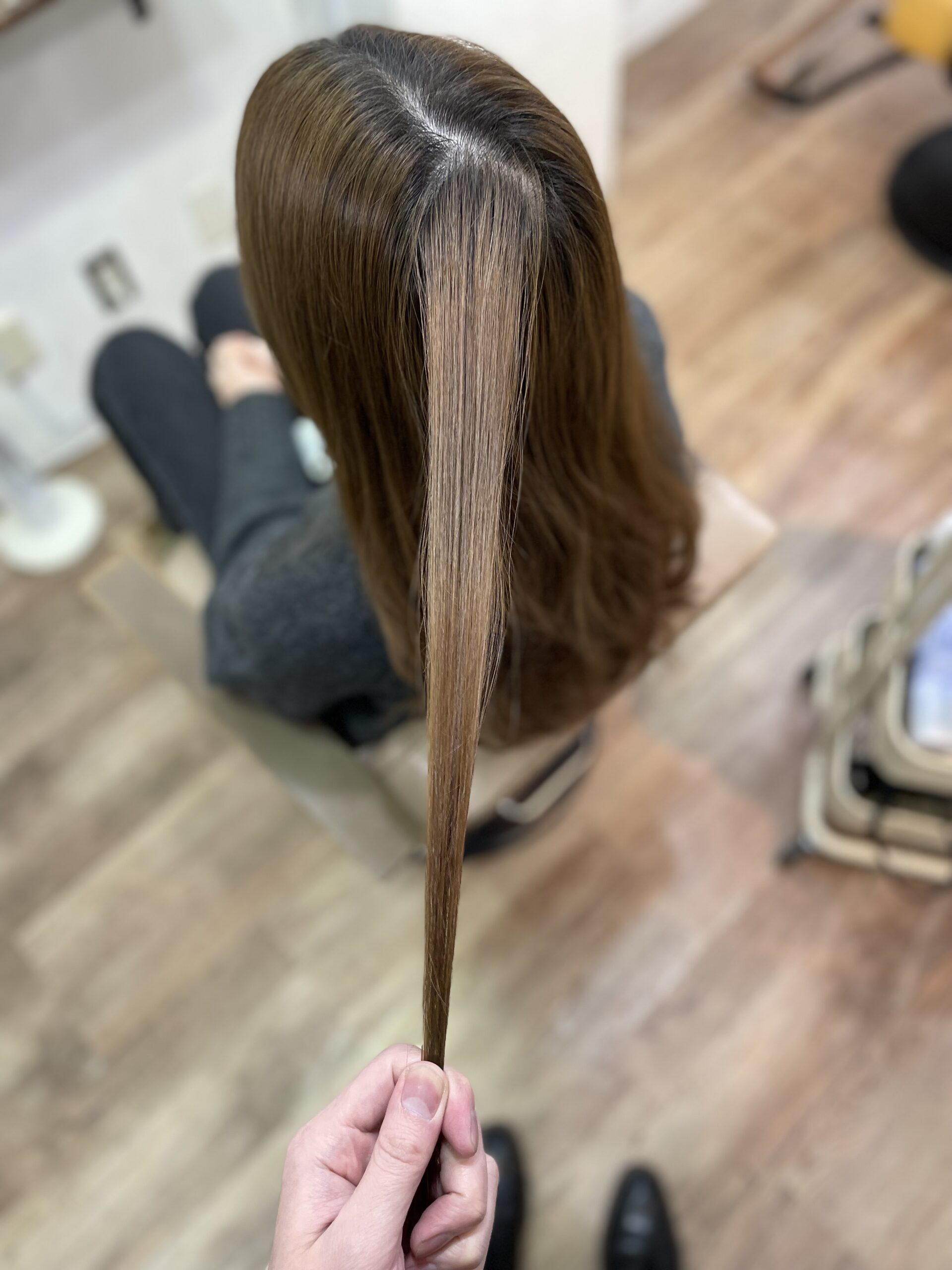 いきなり初回で地毛と同じ明るさにすると、ギャップがありすぎて黒く感じてしまうので、地毛よりも少し明るいくらいで初回は染めていくことが多いです。