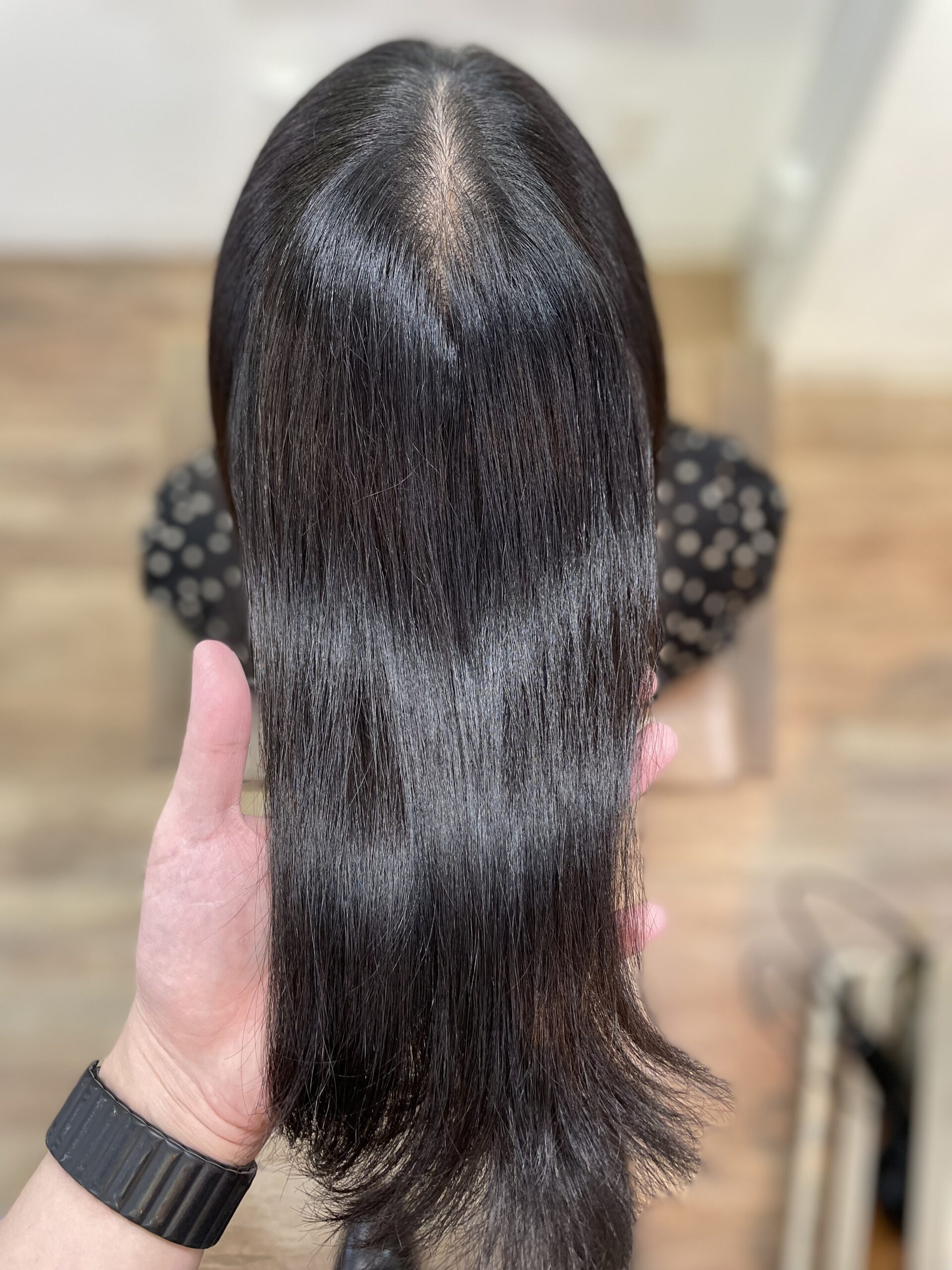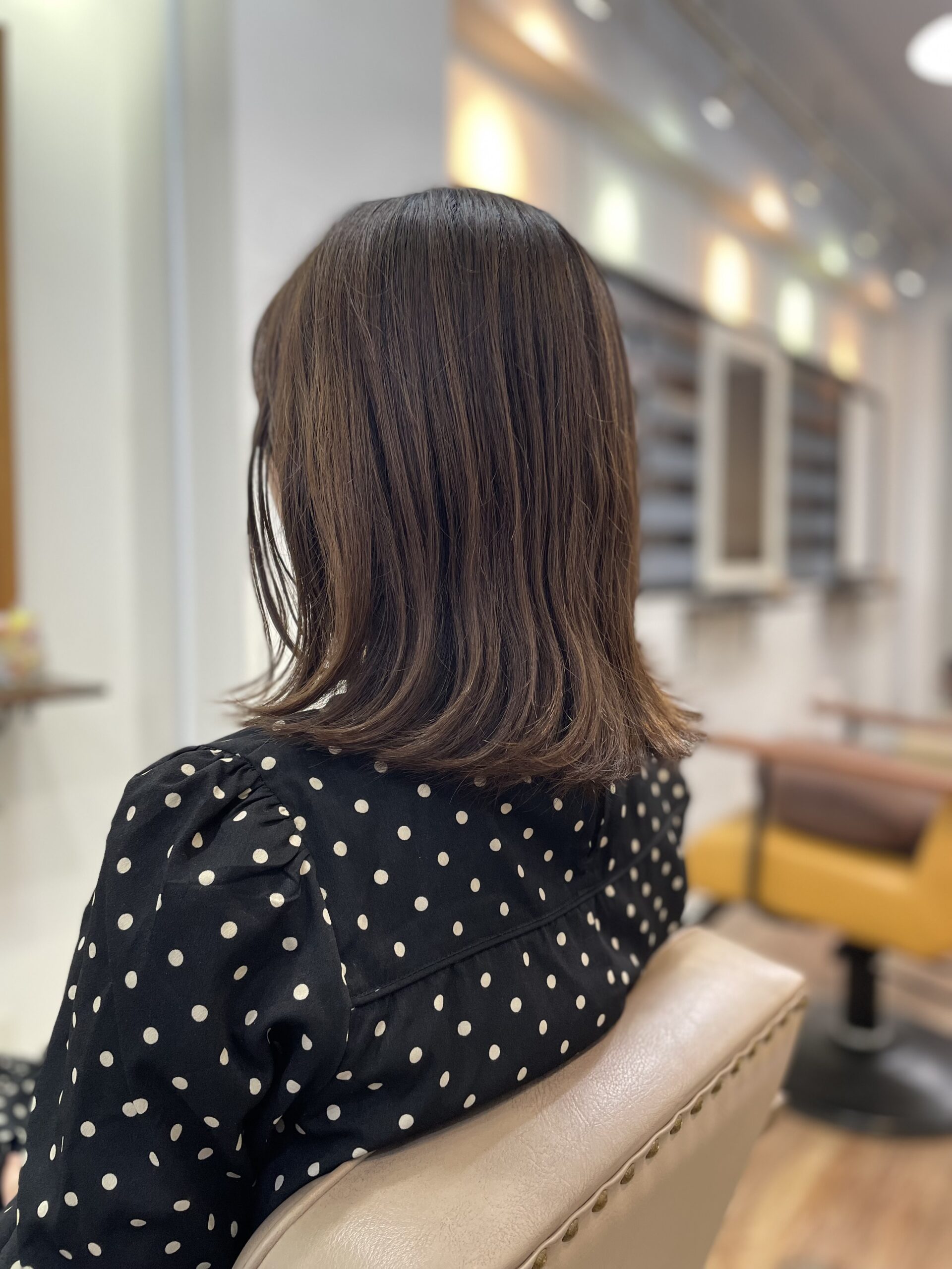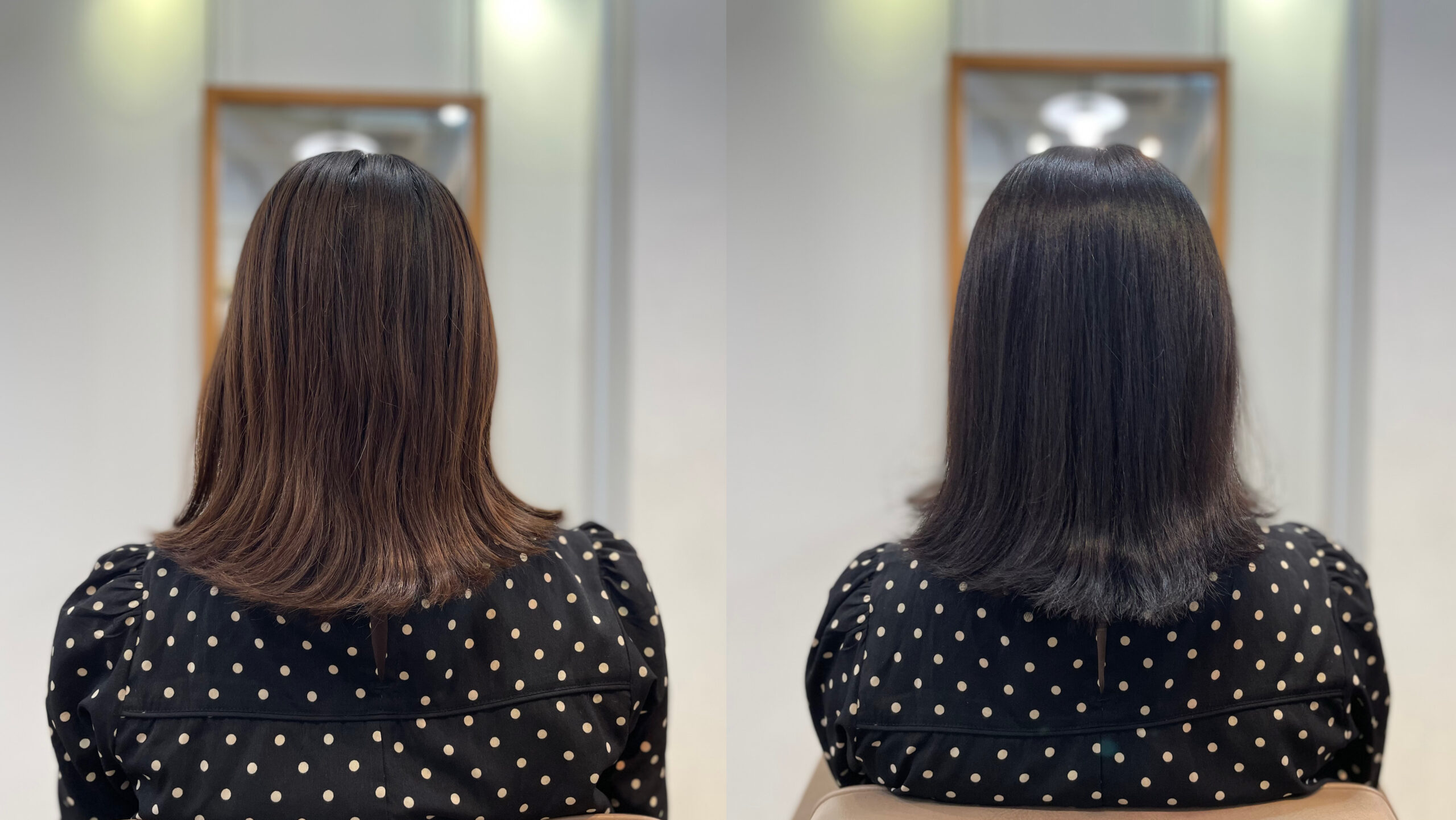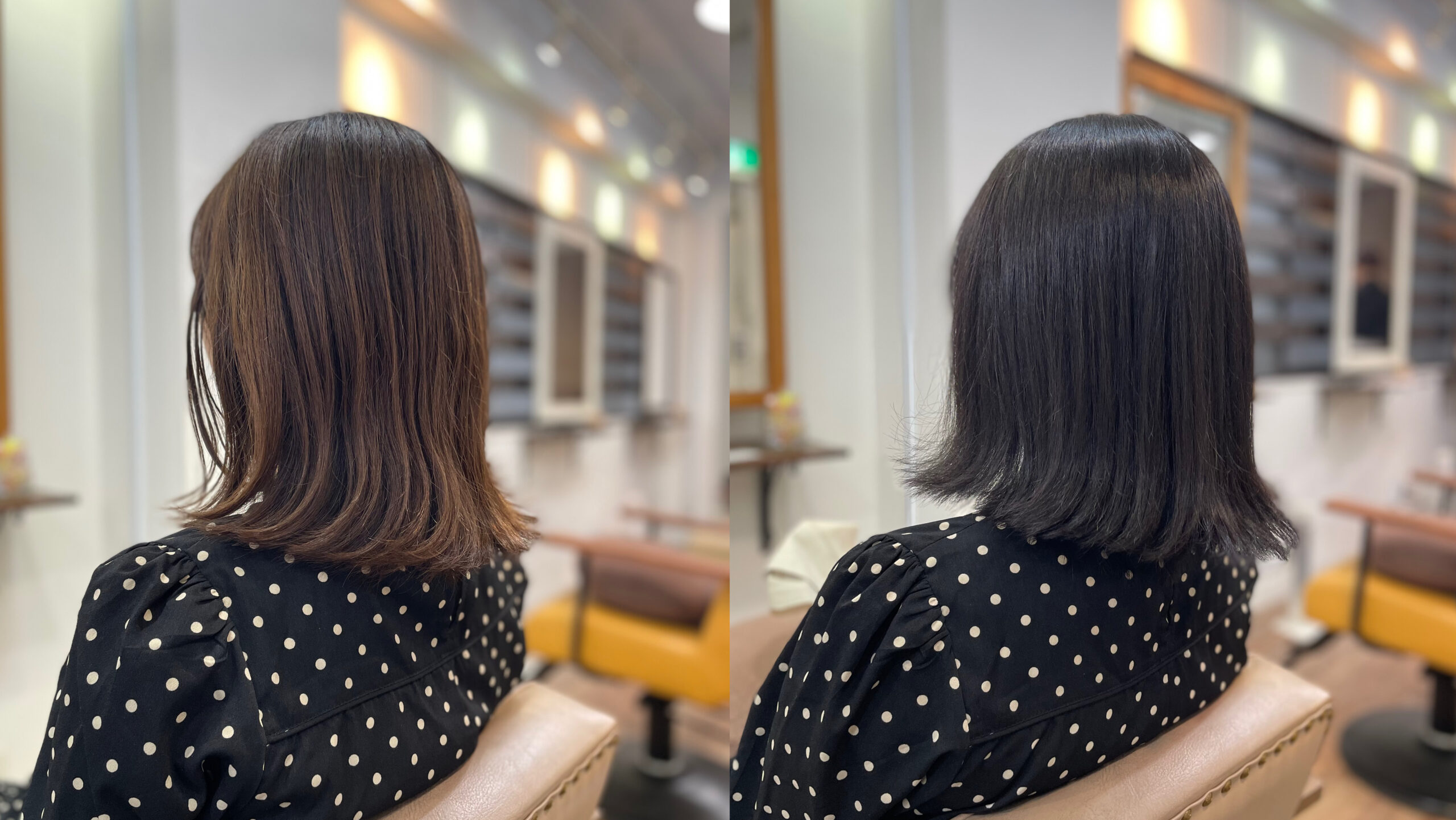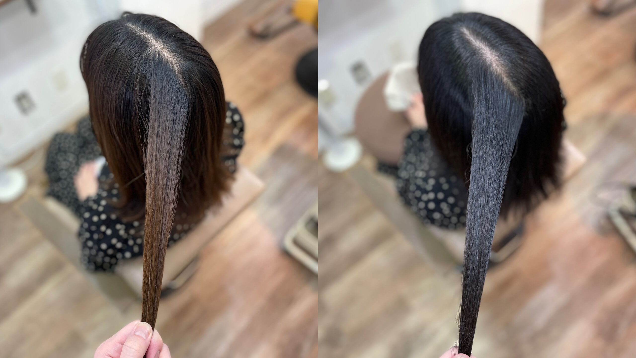 いきなり初回で地毛と同じ明るさにすると、ギャップがありすぎて黒く感じてしまうので、地毛よりも少し明るいくらいで初回は染めていくことが多いです。