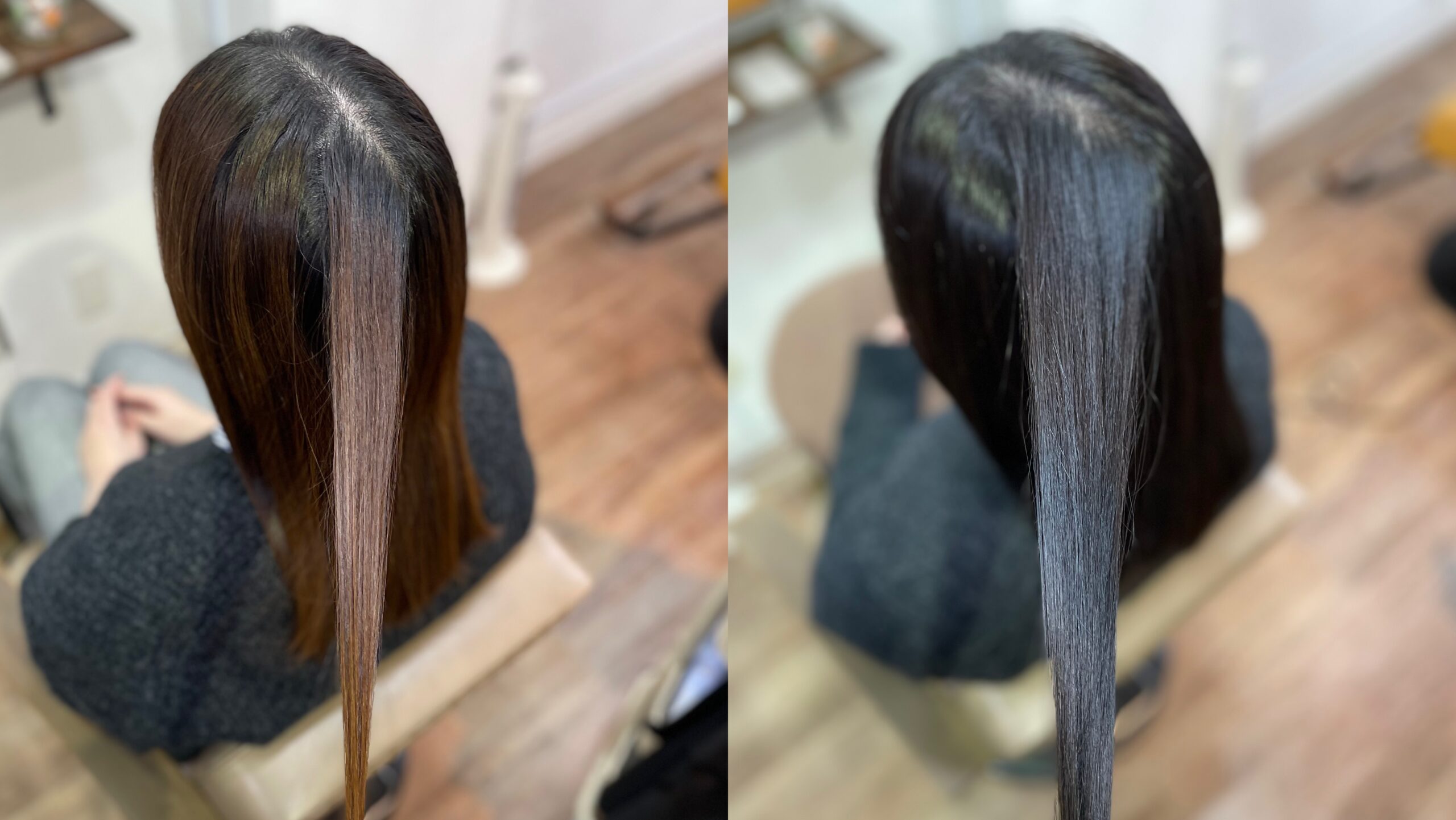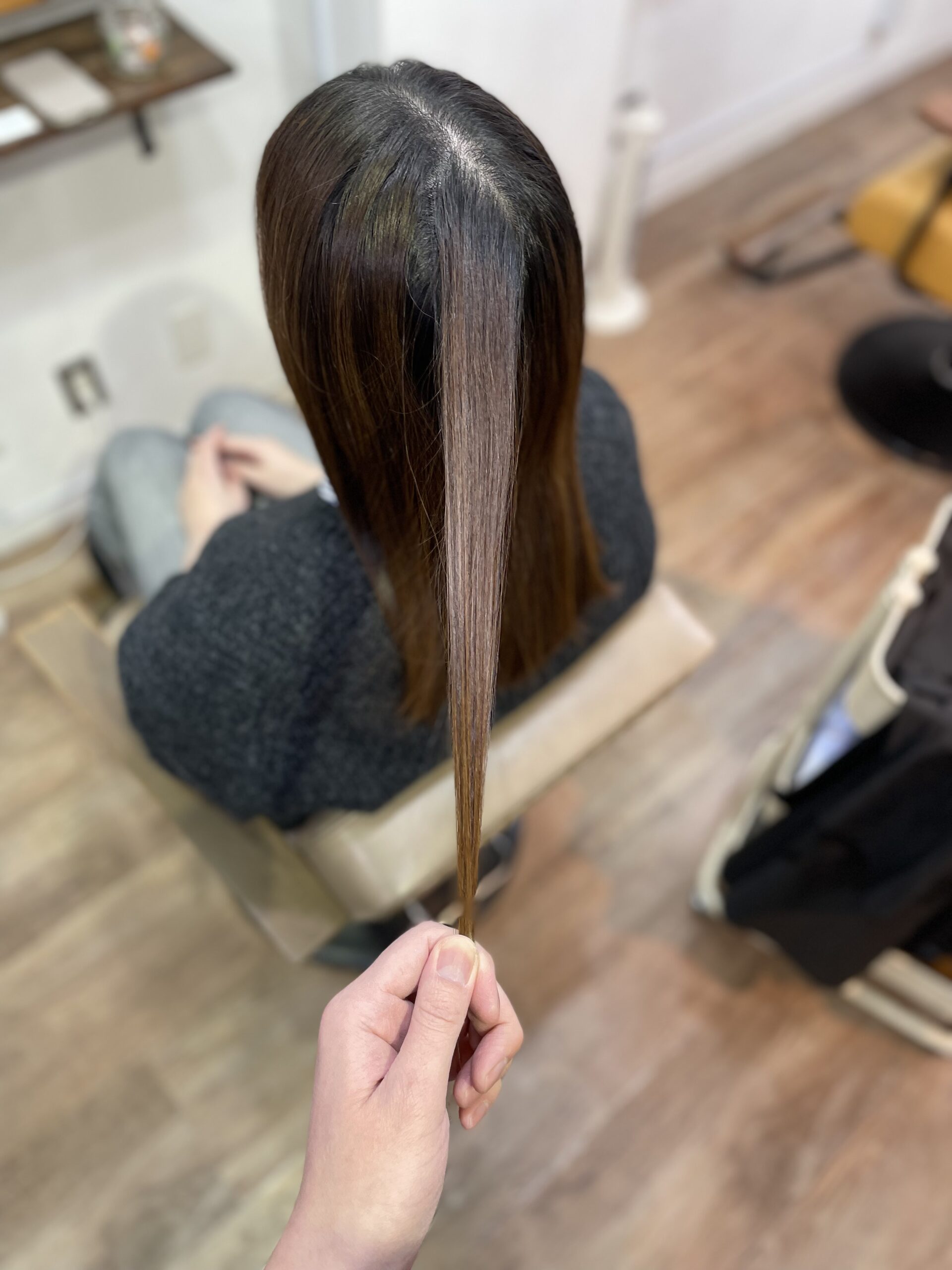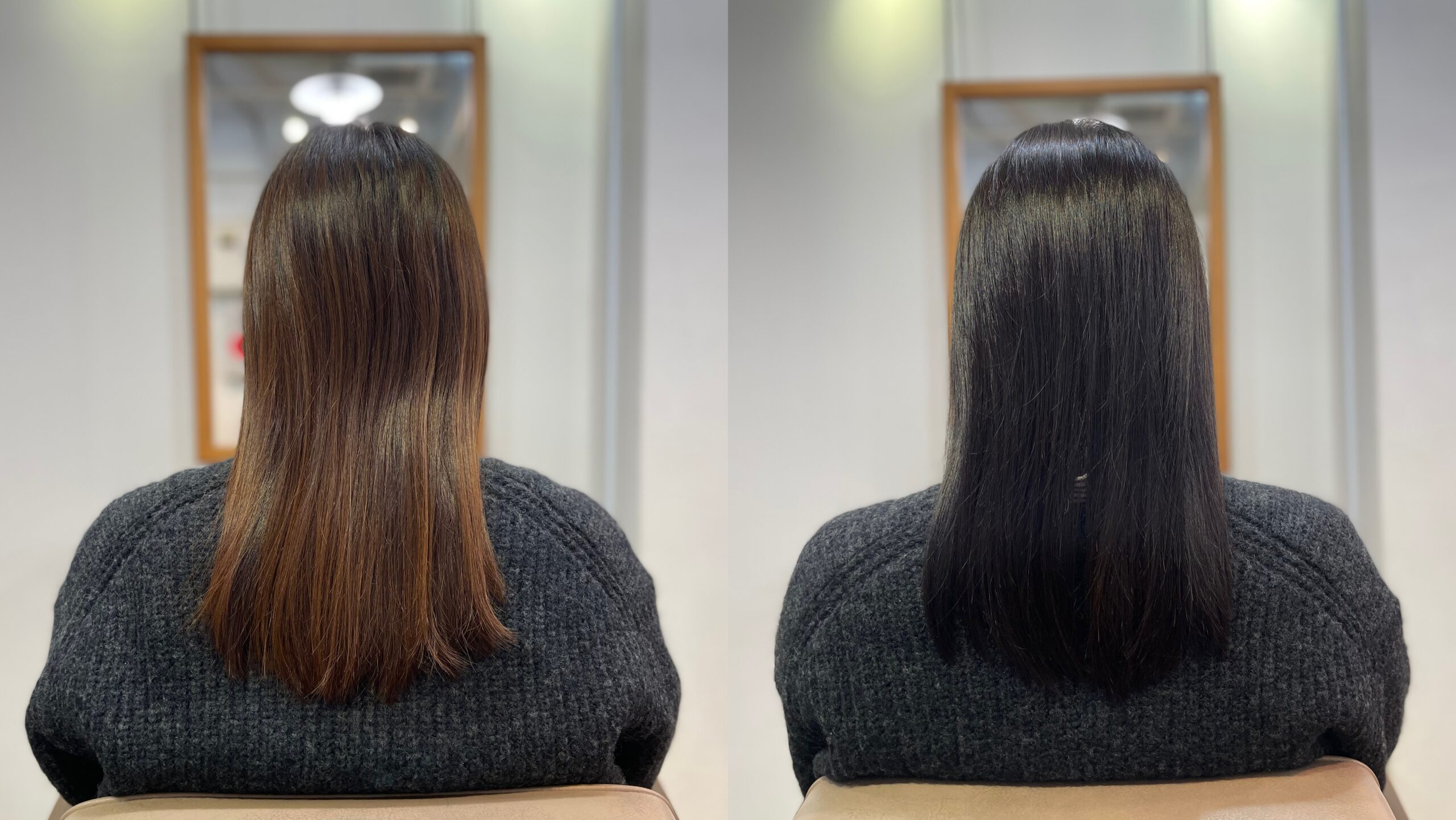 いきなり初回で地毛と同じ明るさにすると、ギャップがありすぎて黒く感じてしまうので、地毛よりも少し明るいくらいで初回は染めていくことが多いです。