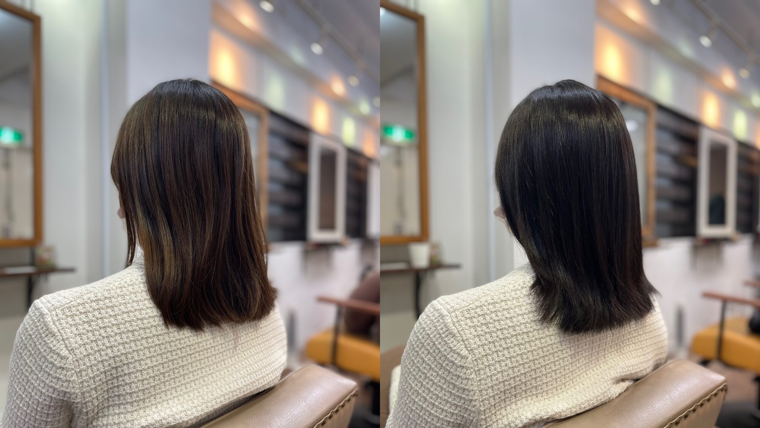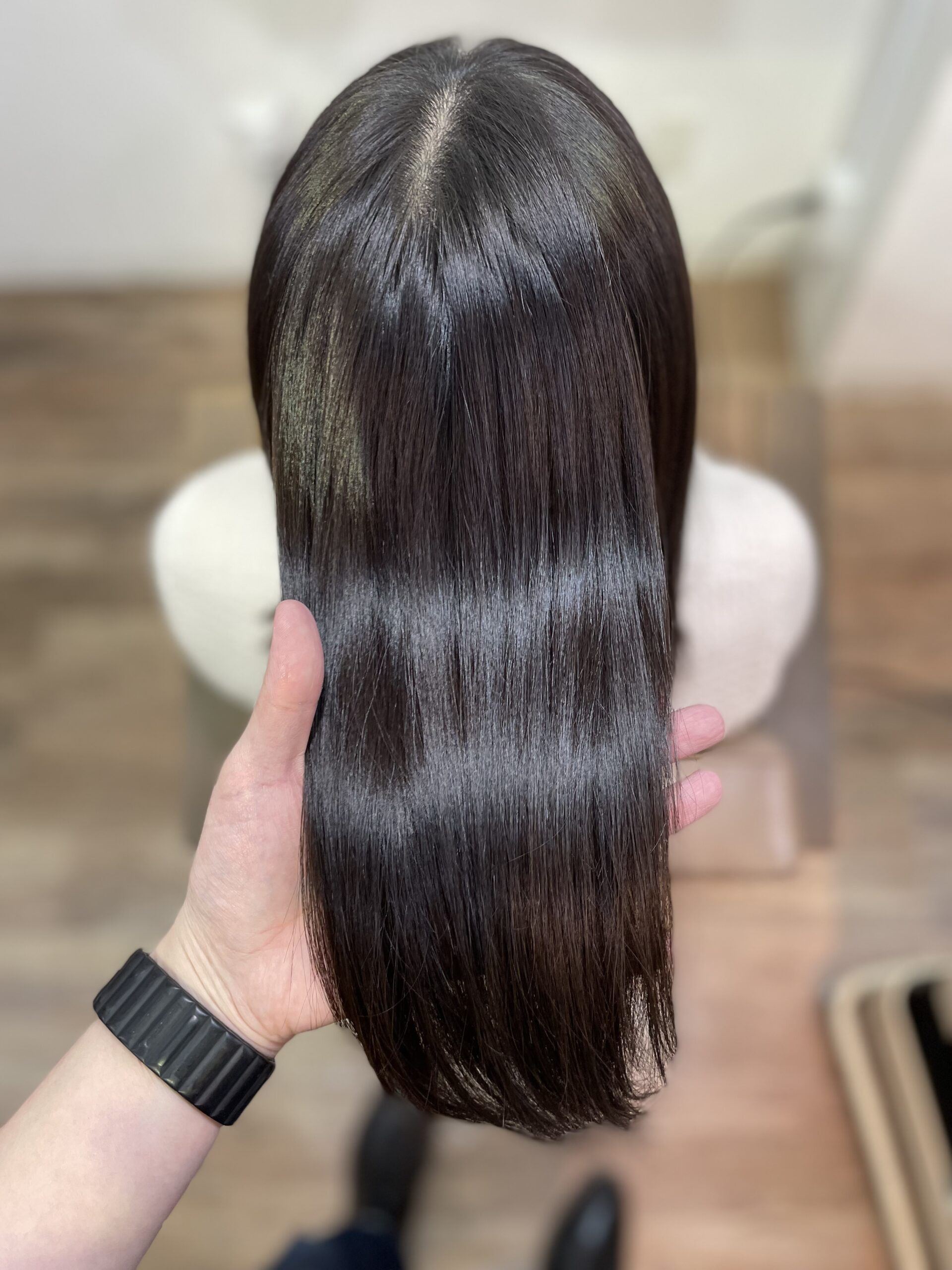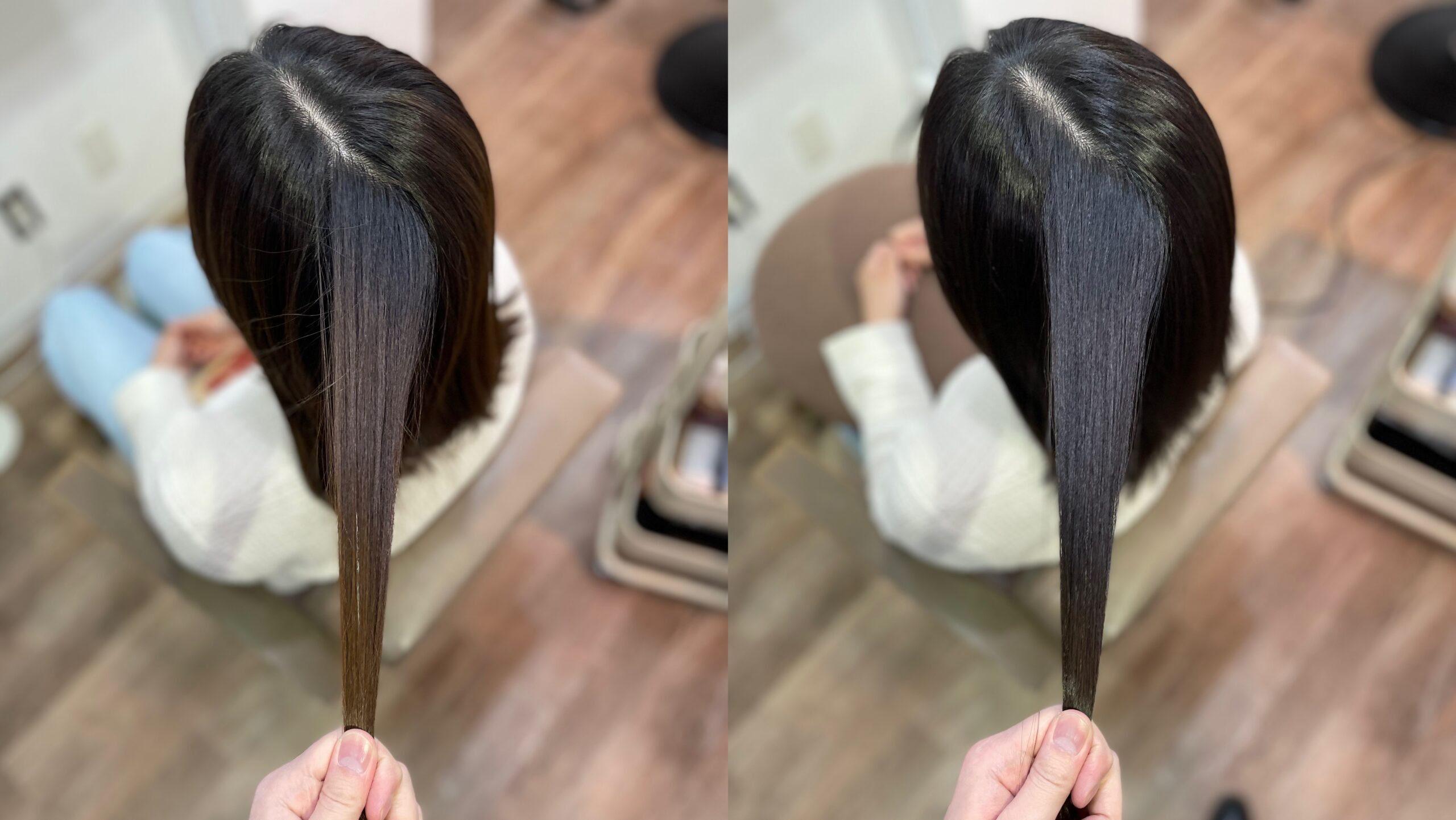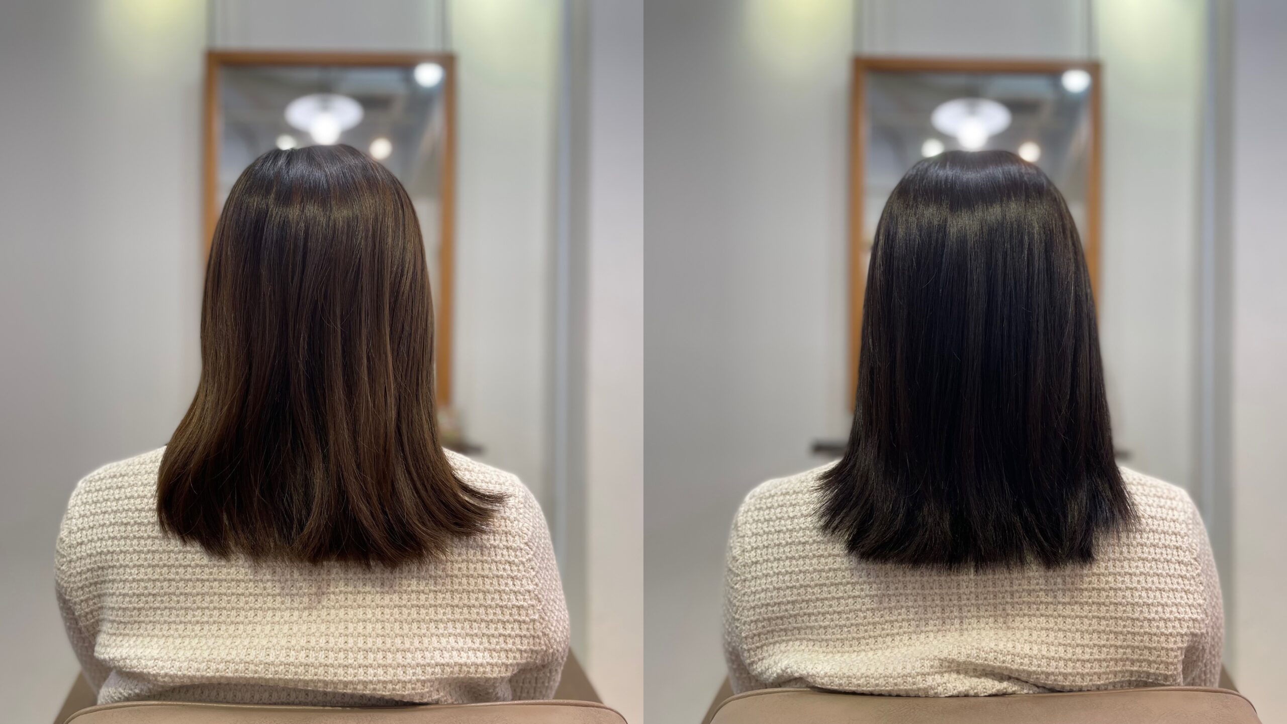 いきなり初回で地毛と同じ明るさにすると、ギャップがありすぎて黒く感じてしまうので、地毛よりも少し明るいくらいで初回は染めていくことが多いです。