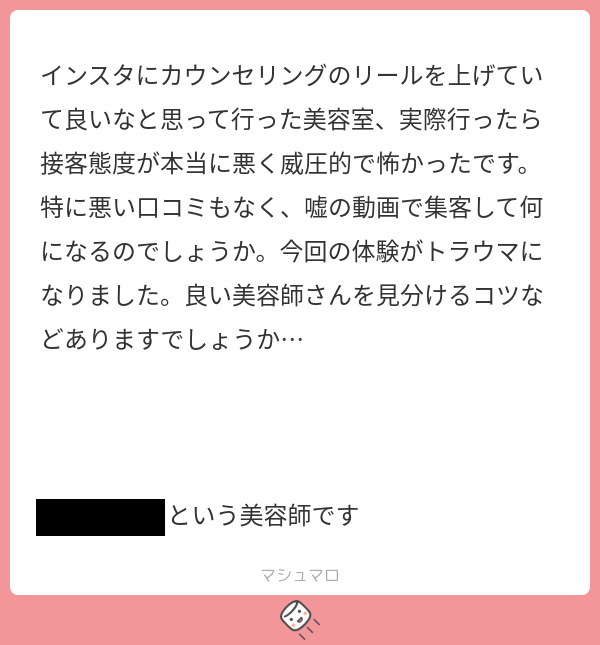 【マシュマロで美容師に匿名で質問】インスタ動画見て行ったら接客態度が全く違く怖かった。いい美容師さんを見分けるコツは?