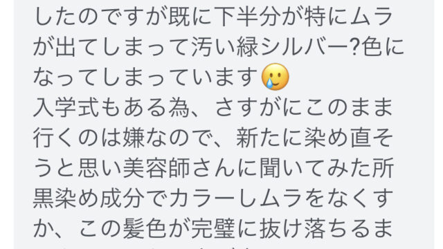 お客様に聞かれる【LINEにてご相談】ブリーチ2回してカラーしたけど汚い緑シルバーに。染め直したいけどどうすれば?